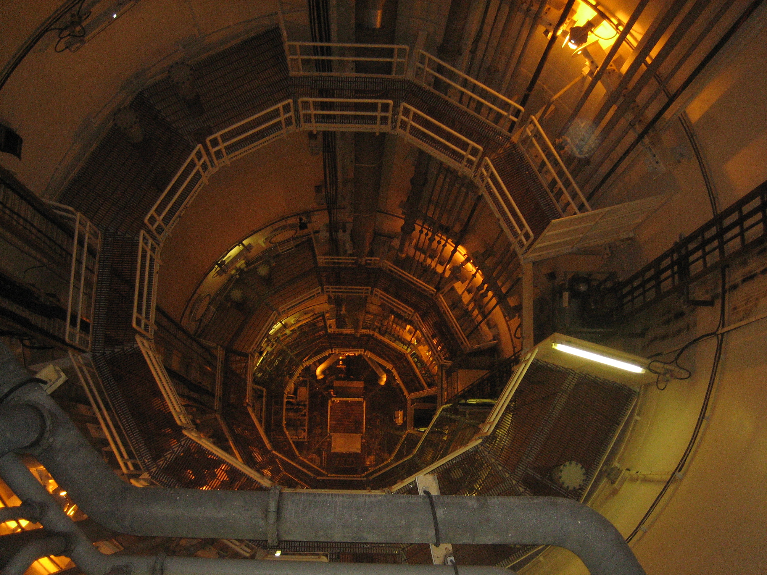 Naast de boortoren krijgen we ook een excursie in het produktiegedeelte van het platform en de gele pijpen waar het platform op drijft (zie eerste foto boven). De bodem van de pijp bevindt zich 15 meter beneden zeeniveau. We kunnen zelf via een tunnel van de ene pijp naar de andere pijp lopen op deze diepte.